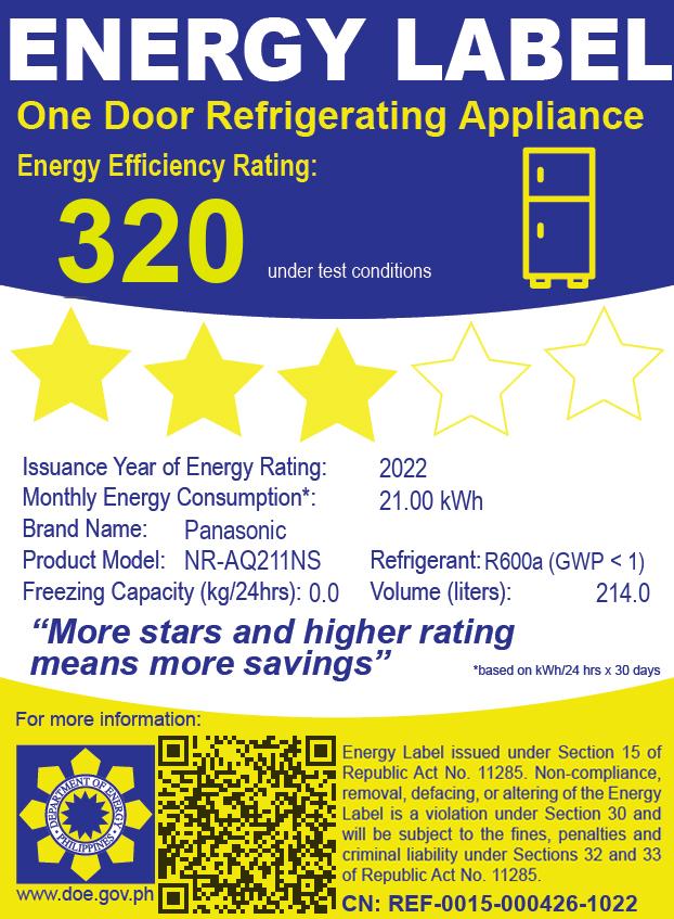Panasonic NR-AQ211NS 7.6 cu. ft. 1 Door Direct Cool Non-Inverter Refrigerator