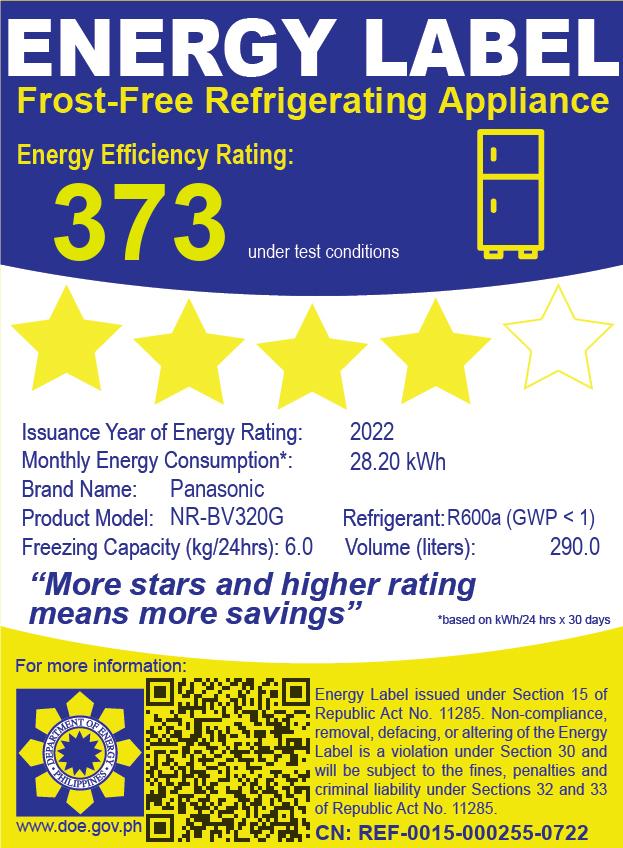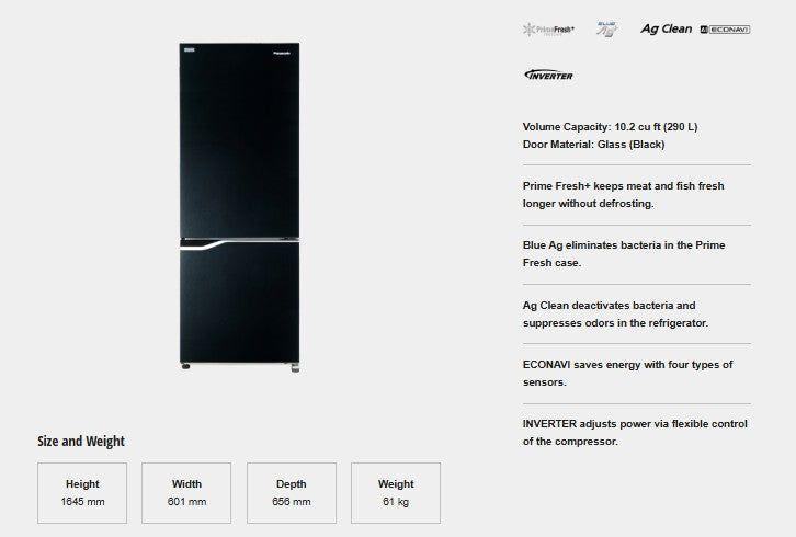 Panasonic NR-BV320GKPH 10.2 cu. ft. Two Glass Door Bottom Freezer No Frost Inverter Refrigerator